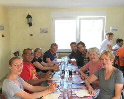 Unfortunately my husband Rodger was unable to go because of a recent surgery. Diana, Mark and I stayed in a wonderful apartment Air B&B in Paris right near the Luxembourg Gardens. For several days before and after the filming we explored museums, took an evening cruise on the Seine, and ate many wonderful meals. Only in France can you find a real croissant!